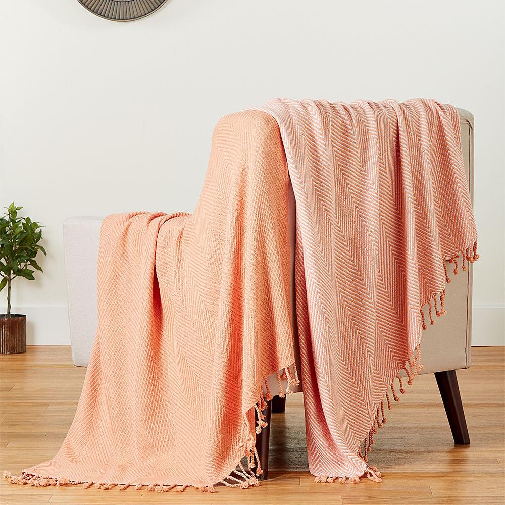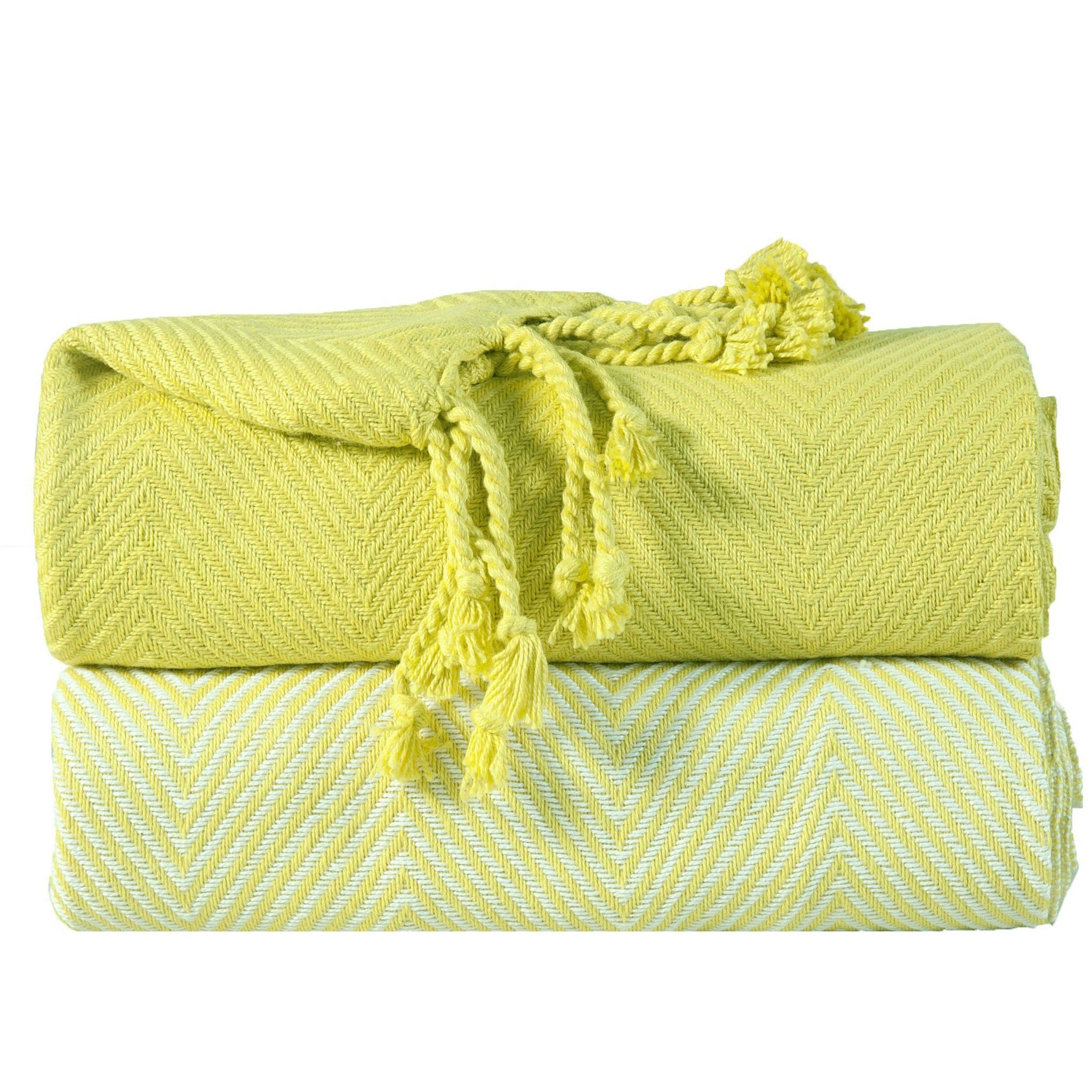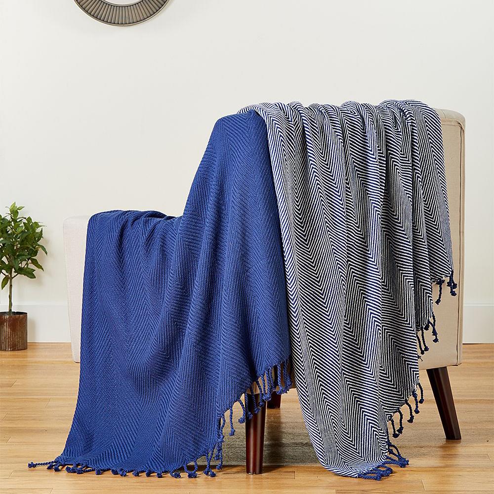 This comfortable throw blanket offers style as well, available in a variety of colors. Crafted of 100-percent cotton, this throw is conveniently machine washable.