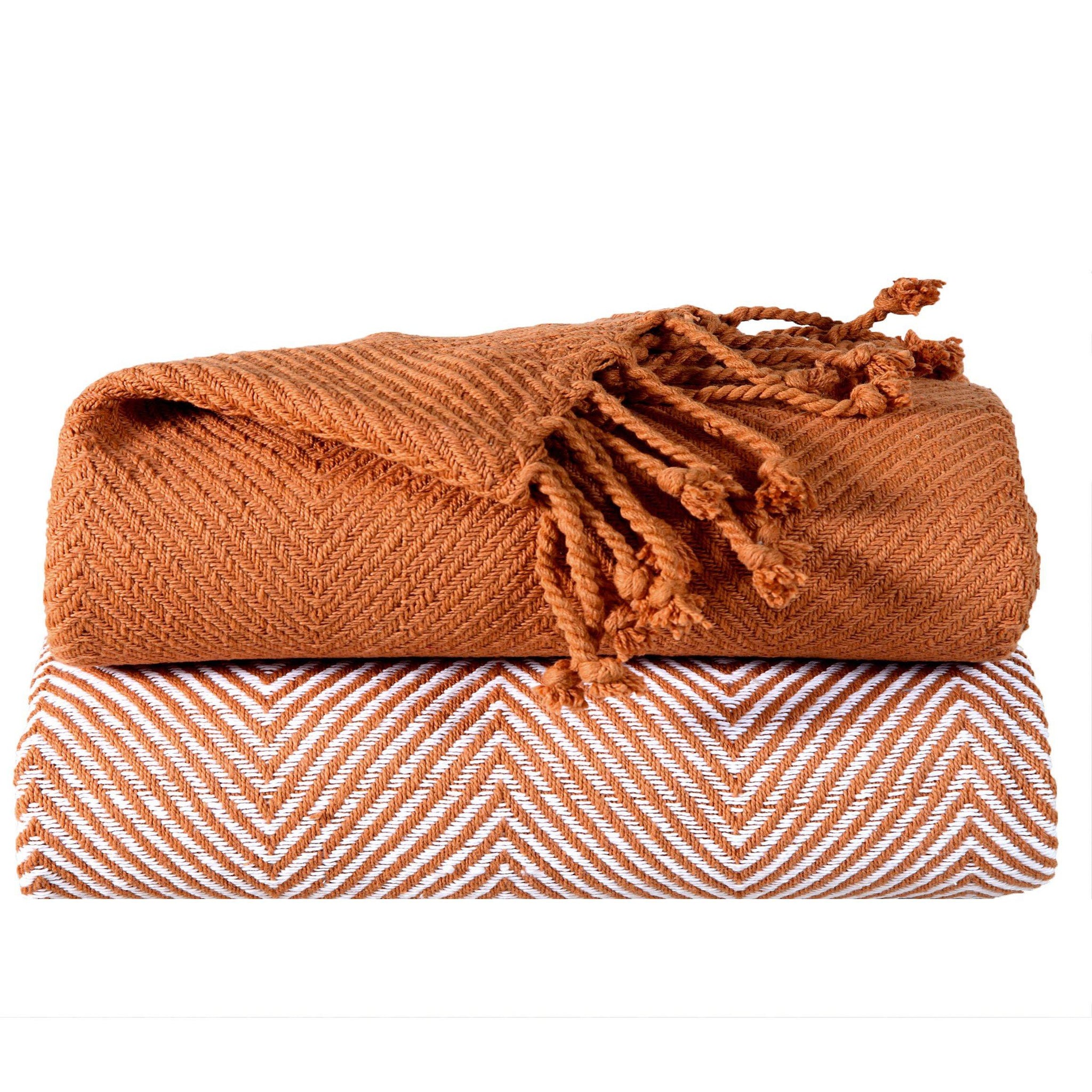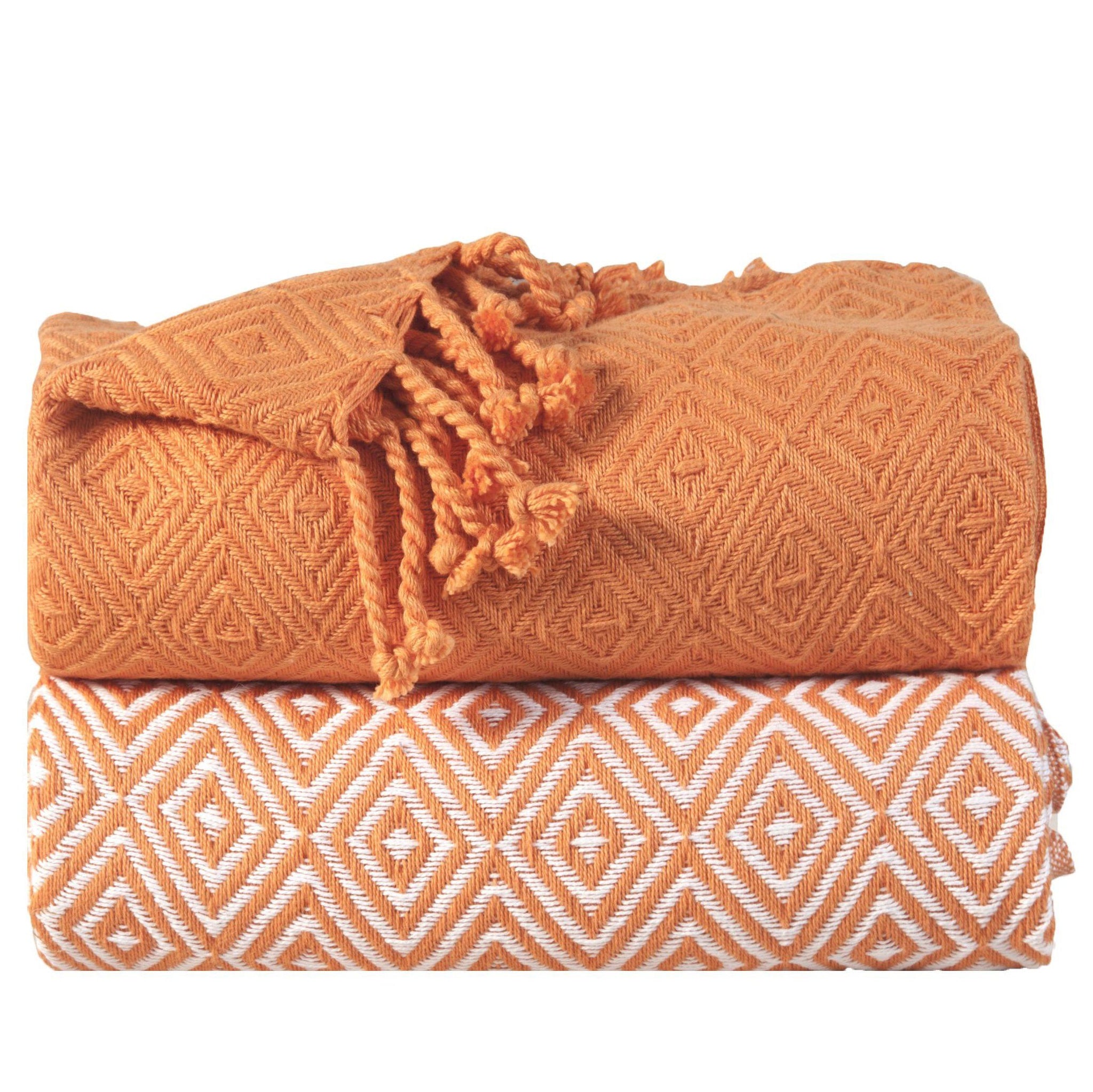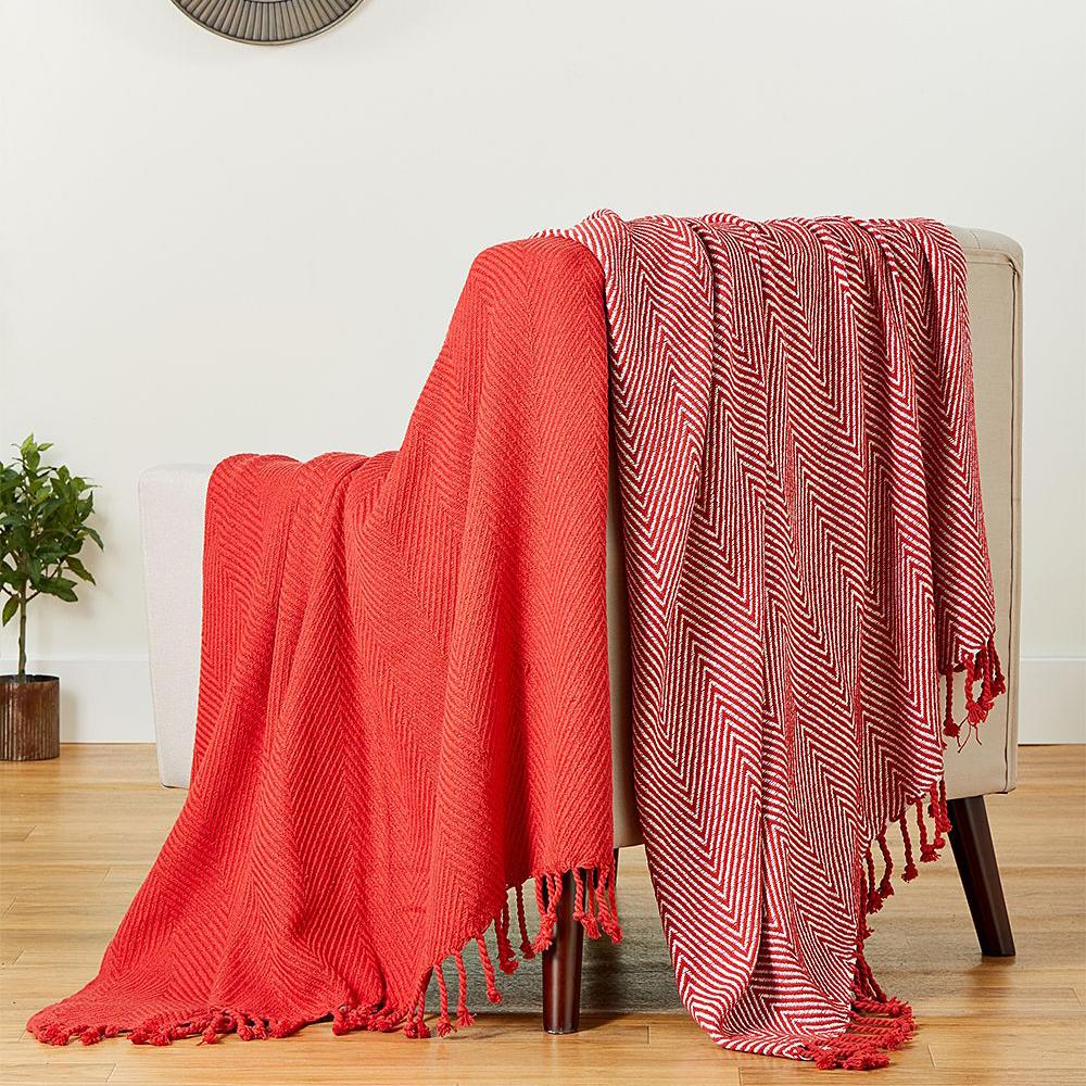 This comfortable throw blanket offers style as well, available in a variety of colors. Crafted of 100-percent cotton, this throw is conveniently machine washable.
