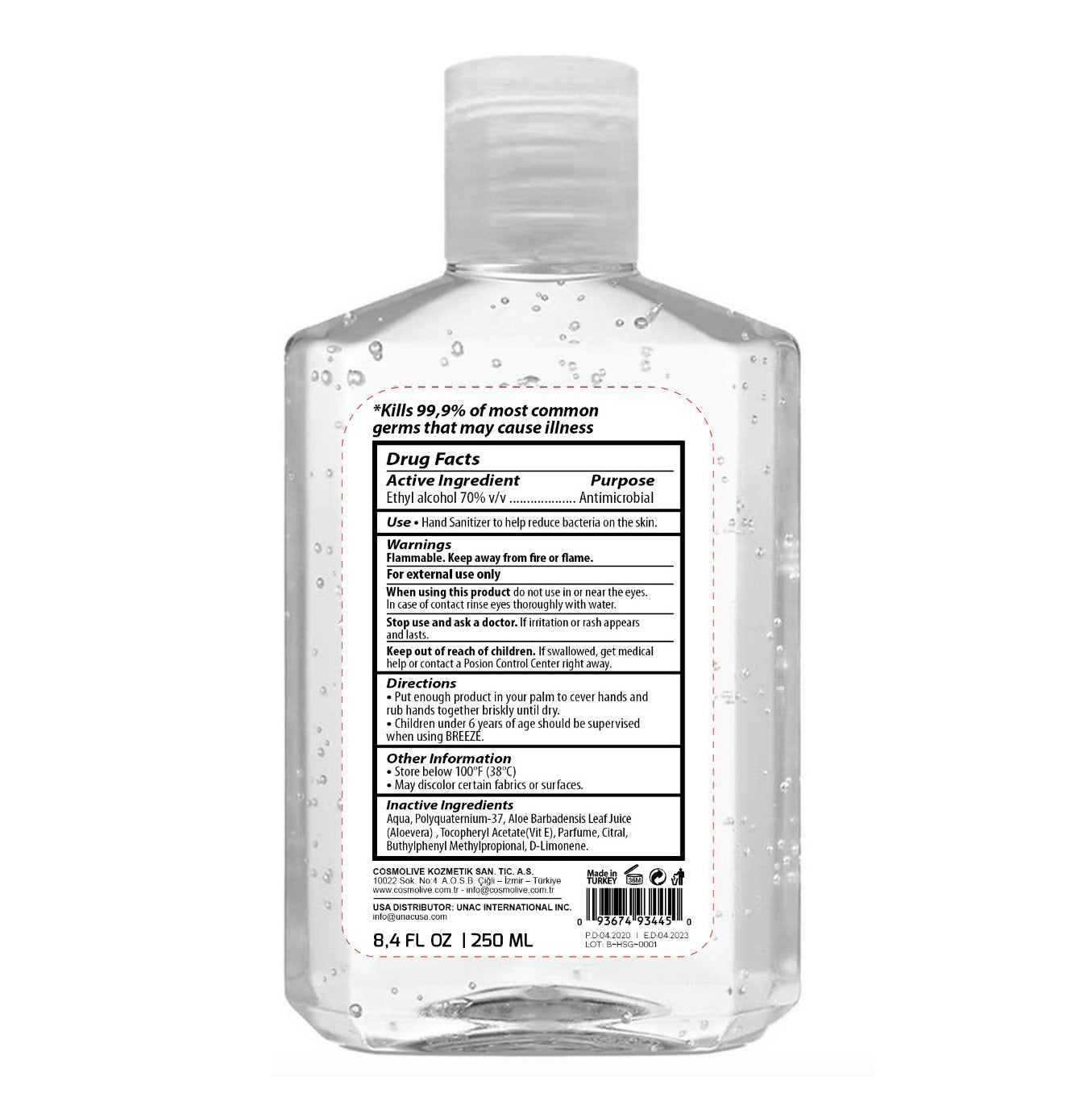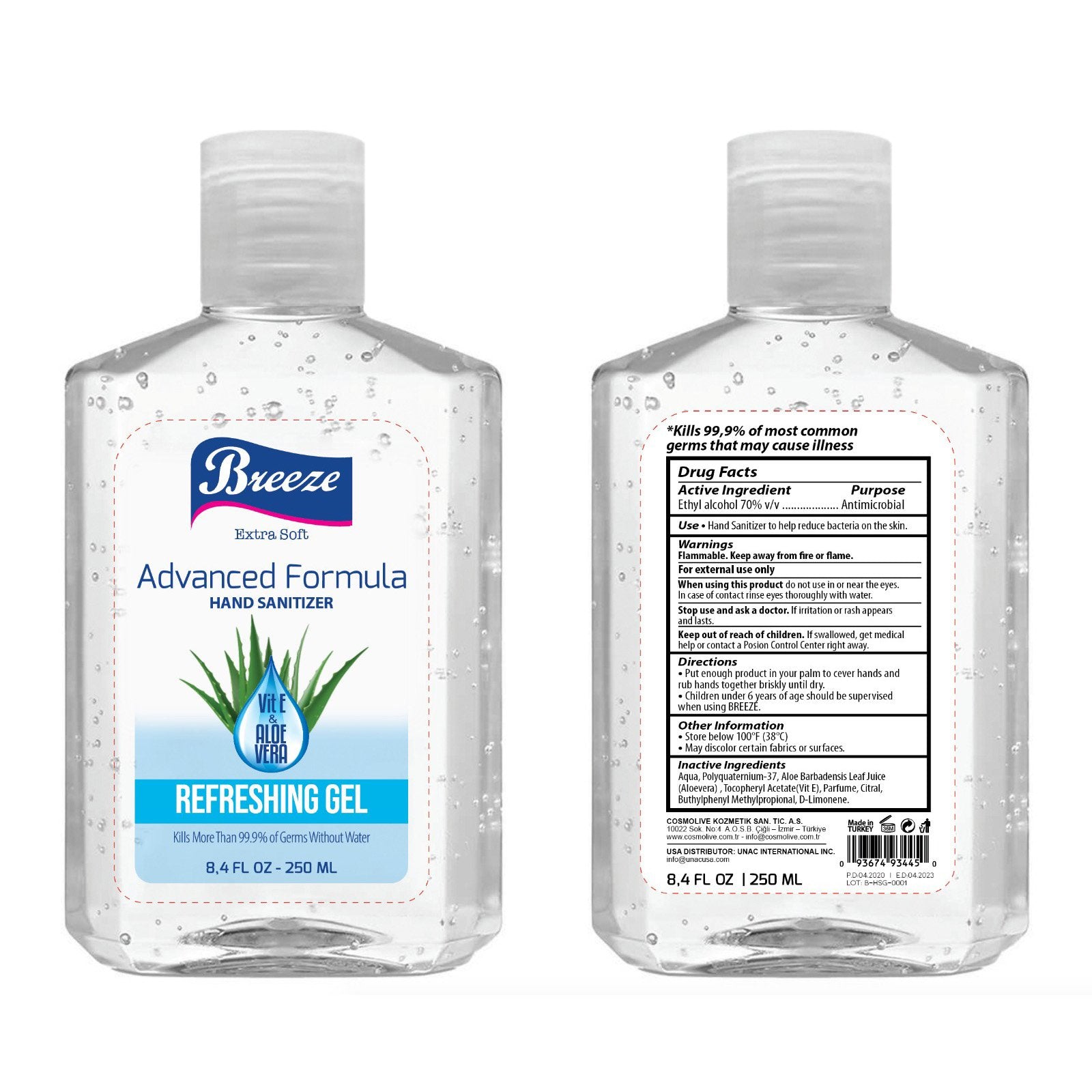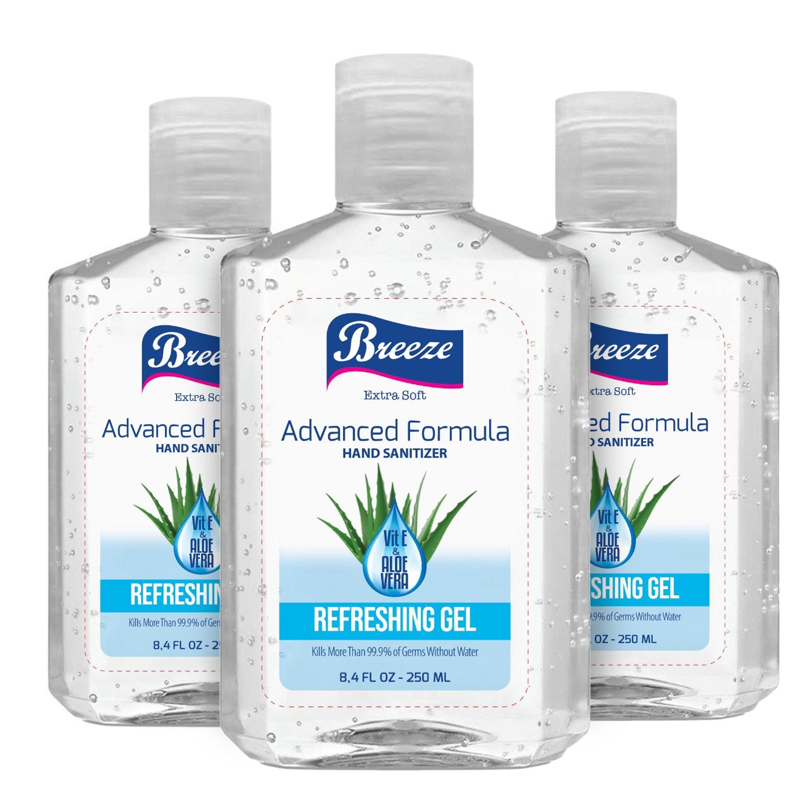 Breeze Extra Soft, Advanced Formula, Hand Sanitizer with Vitamin E & Aloe Vera moisturizes hands while it kills 99.99% of germs without water. Comes in 8.4 ounce flip top sanitizer gel. Kills 99.9% of most common germs that may cause illness.