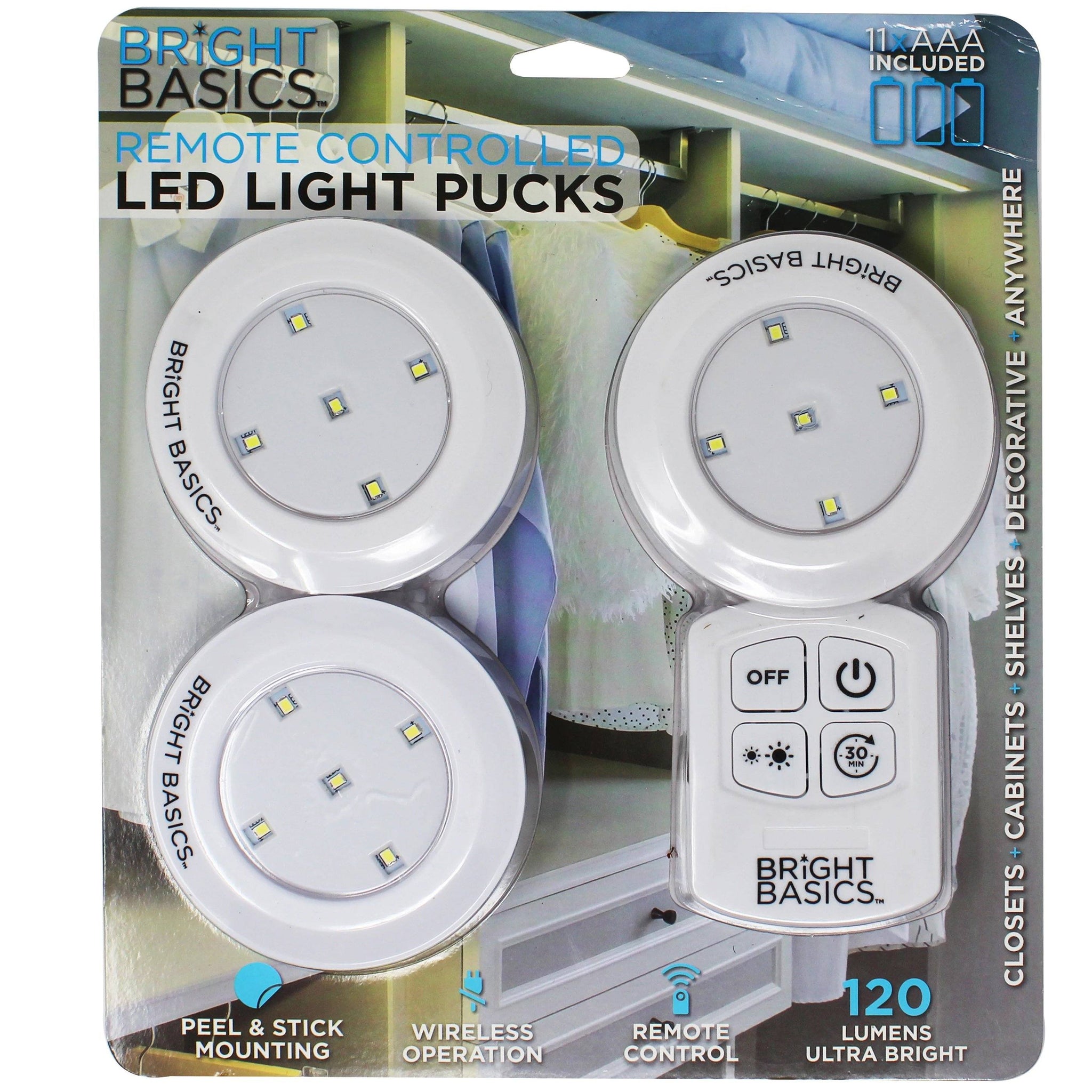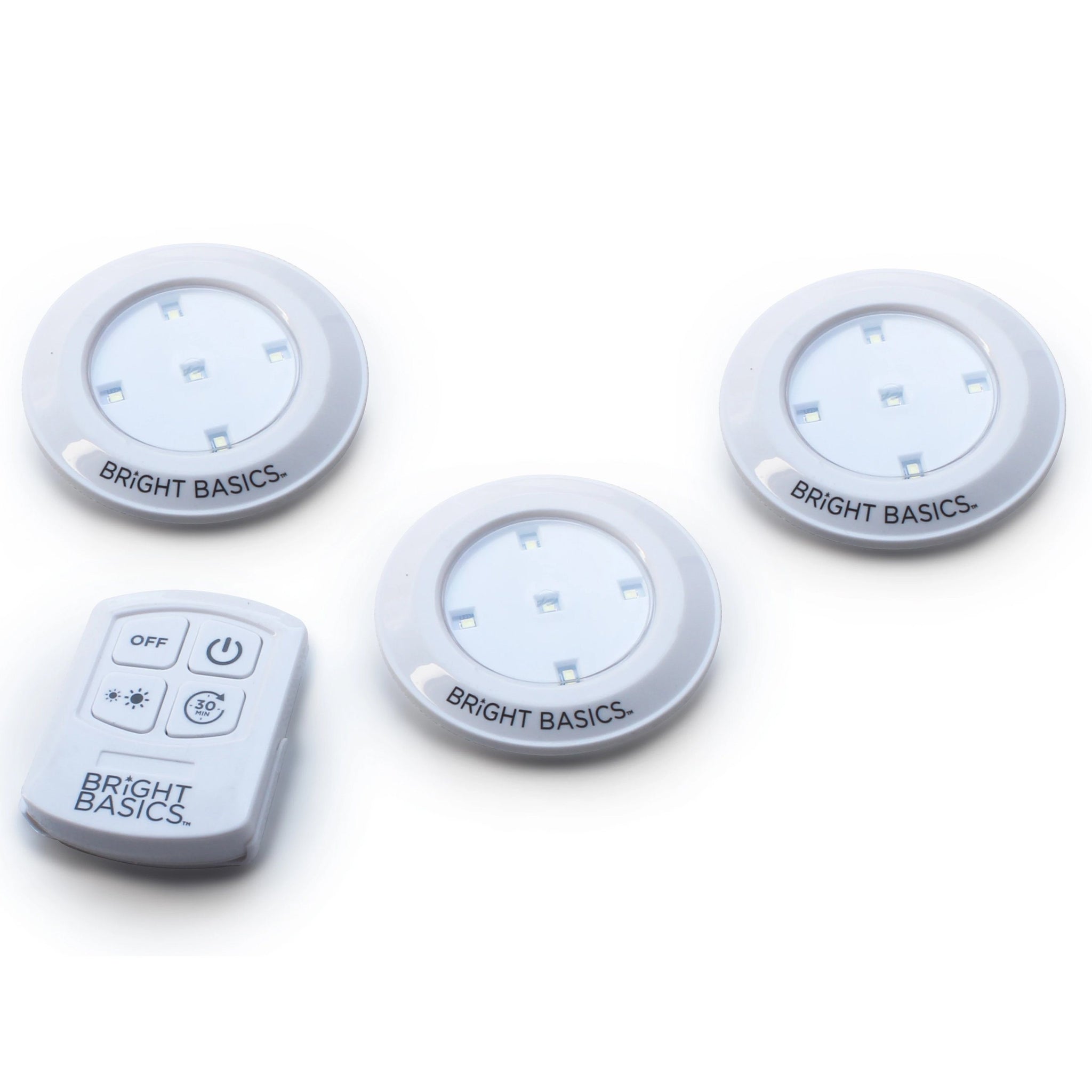 The Bright Basics Ultra Thin Wireless LED Puck Lights gives you super bright lighting up to 120 Max Lumens. The LED lights give off a cool white glow.