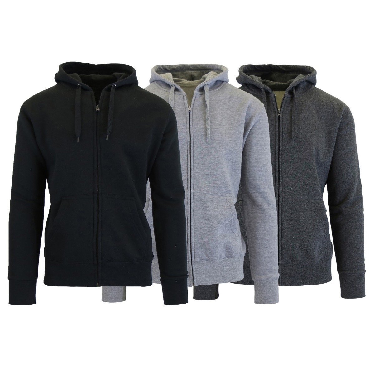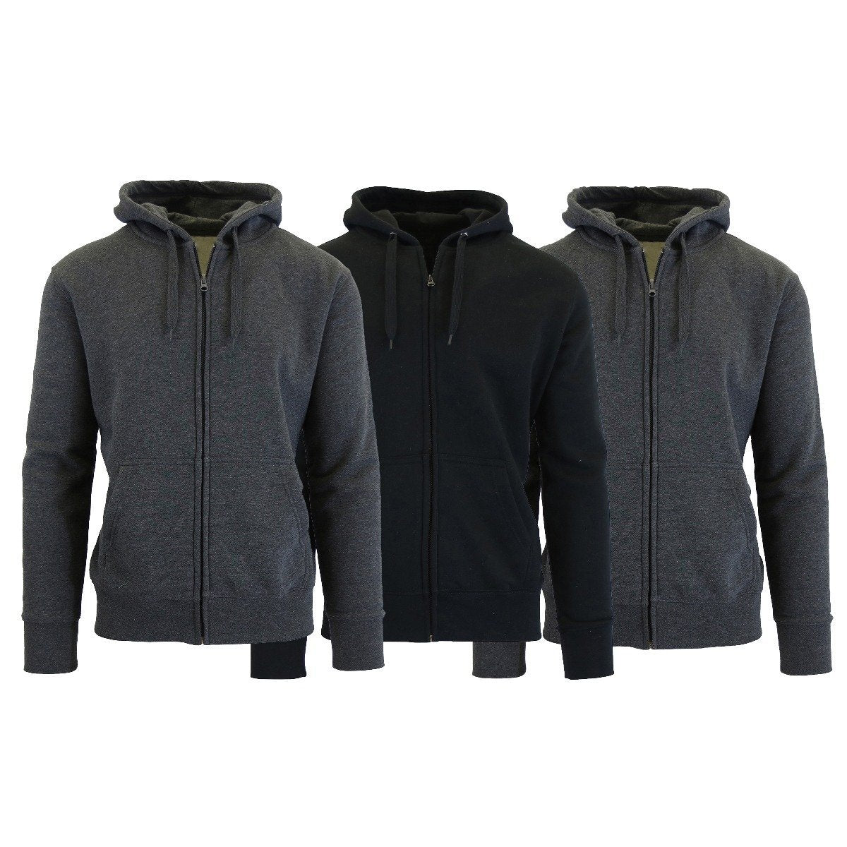 3-Pack Men's Slim-Fit Fleece-Lined Zip Hoodie
