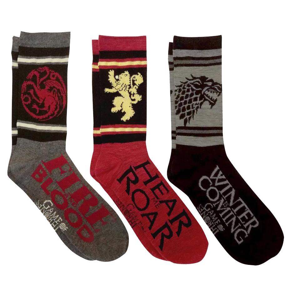 Show off your pride for your clan with this official game of thrones with these 3-pair pack Game of Thrones™ Houses socks.