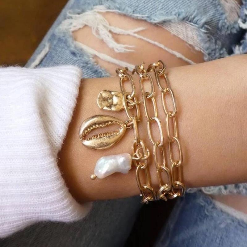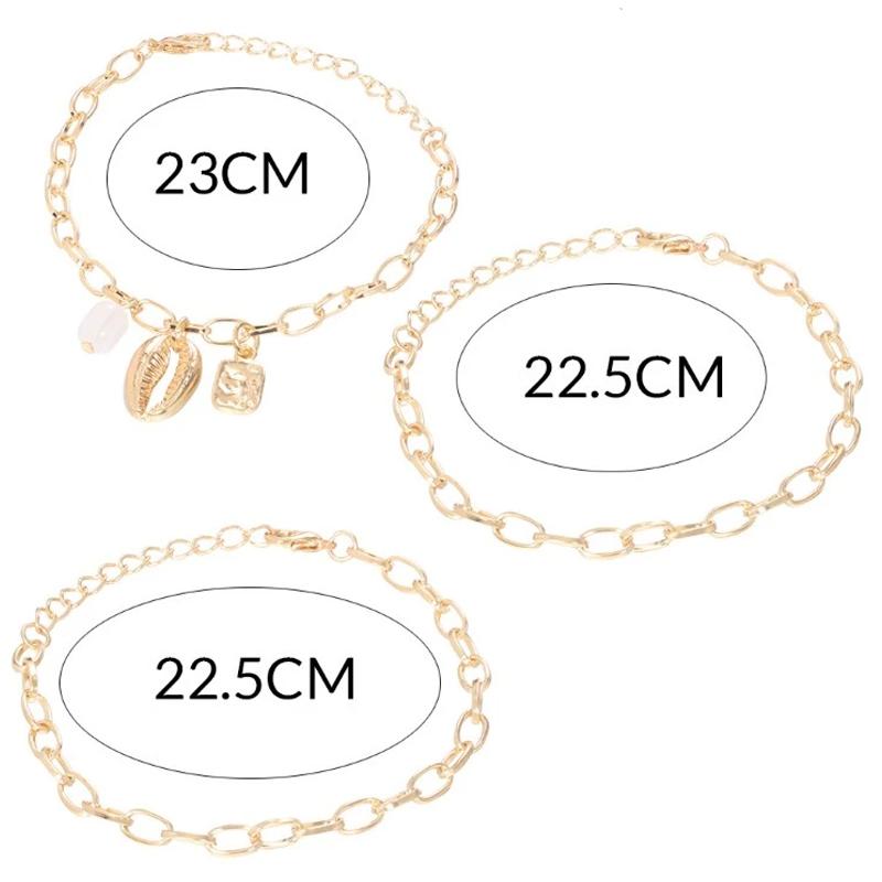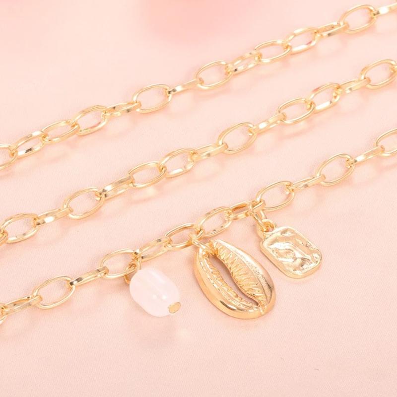 3-Piece Set: Chunky Sea Shell Pendants in 14K Gold Plating Bracelet