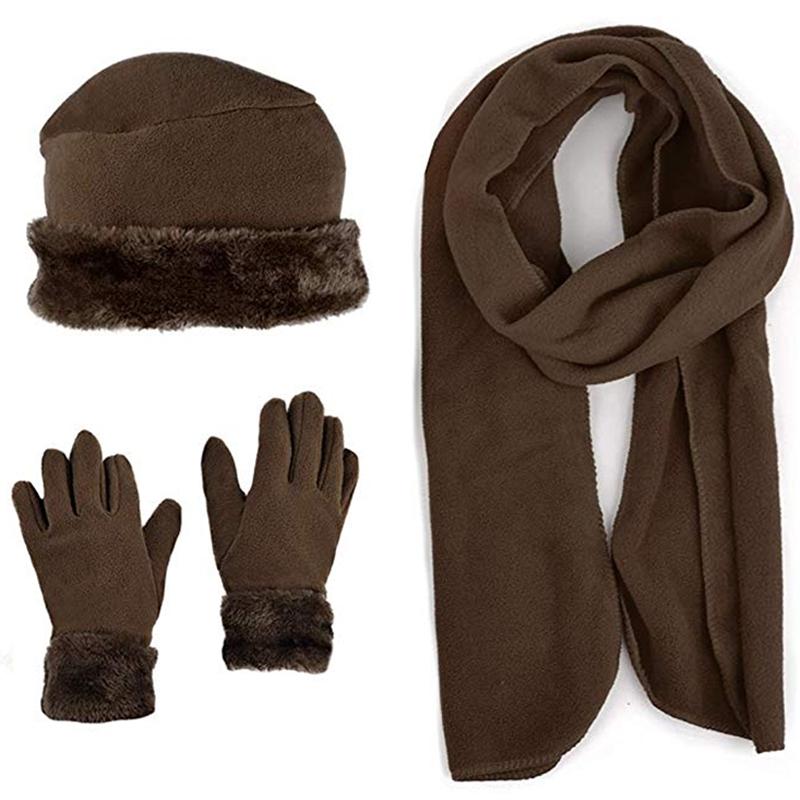 Keeping your head warm can affect the rest of your body temperature and this set includes a hat, gloves, and scarf to keep your head, hands, and neck warm all winter long. This set comes in a variety of colors that you can choose from for your own style. Our women's winter set comes with a fur trim and cloche hat, gloves, and scarf, making it the perfect winter gear for the cold weather. Each piece is matching so you can survive the winter in style. One size fits most. Our winter hat set is mostly for women or girls and can be a great gift set for any holidays, celebrations, or birthdays. Nothing is better than staying warm, comfy, and stylish!