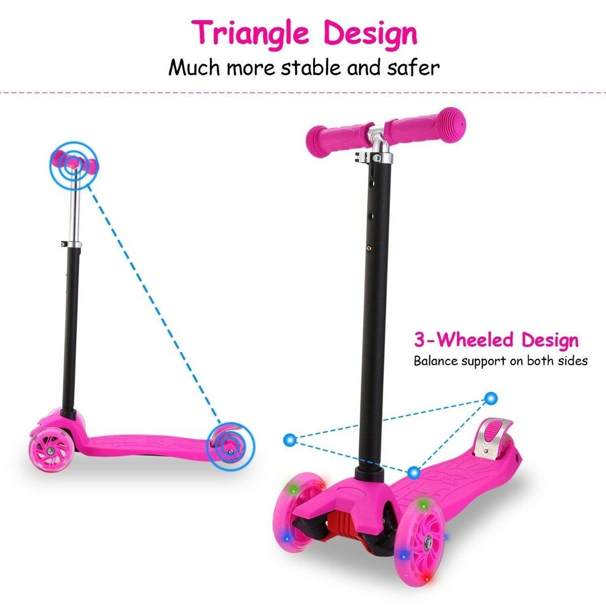 3-Wheeled LEDs Kick Scooter for Kids Flashing Scooter Adjustable Height