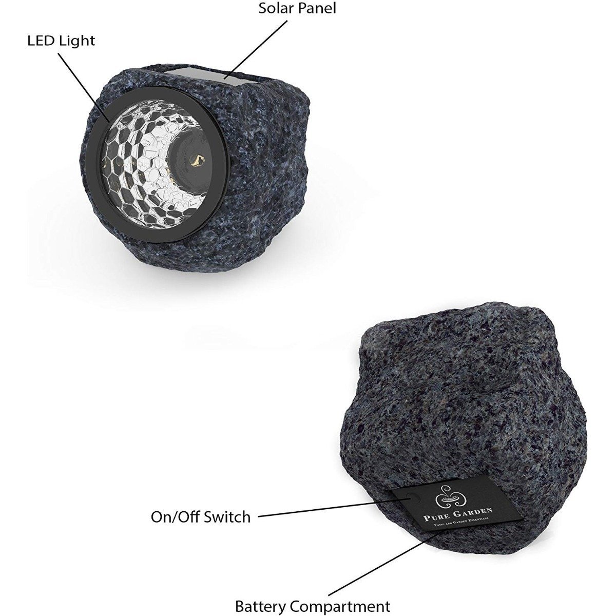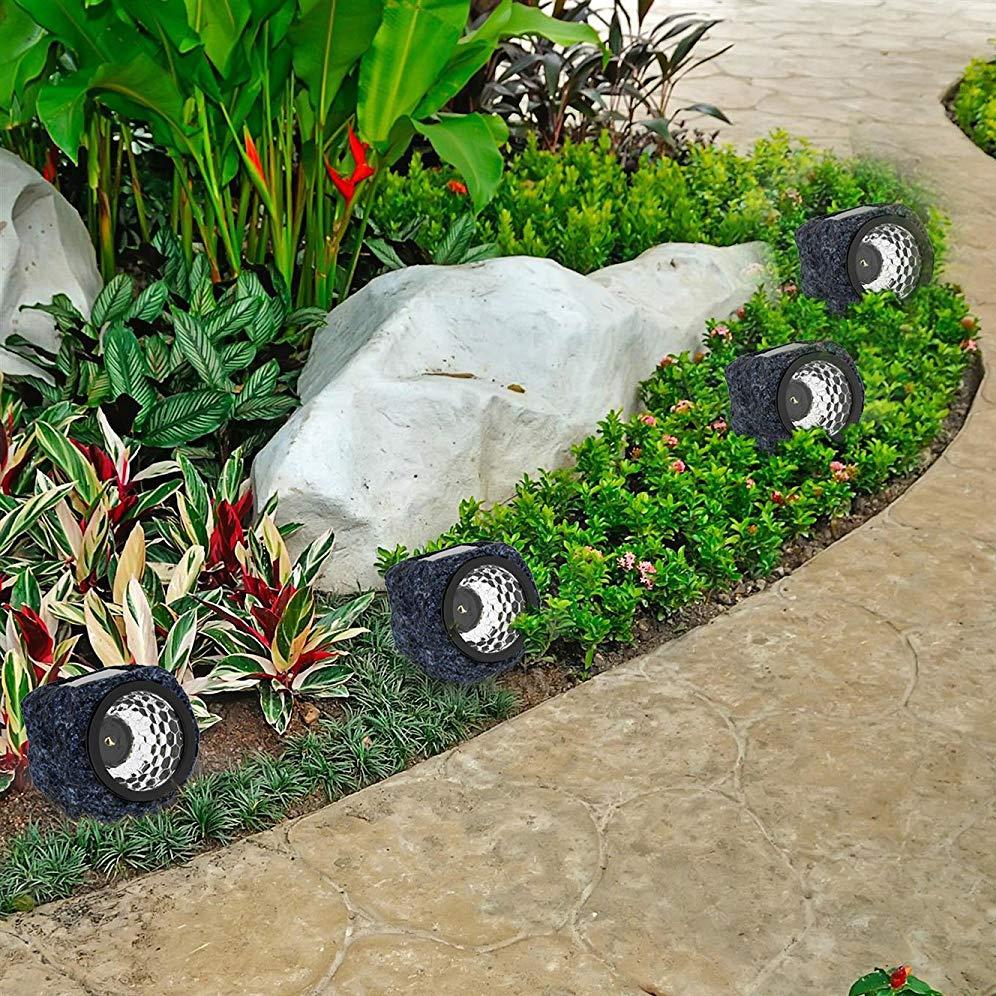 Our Outdoor Solar Rock Light, inbuilt with an upgraded photocell sensor, will auto turns off in the daytime and turn on during the night. (Turn on manually for the first time use). 4 Packs Solar rock-shaped lights provide a natural outlook that beautifully blends into your landscape with a wide illumination angle. 8 Hrs fully charged in the direct sunlight and 10Hrs illuminate during the night, no wire hassle and energy-saving. IP44 water-resistant performance can resist rainy, snowy or other weather conditions. Widely used in your garden, pathway, driveway and walkway, etc.
