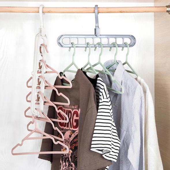 Tired of reorganizing your closet every time it gets messy? We've got a solution for you! This Magic Clothes Hanger has 9 holes to hang clothes from, with an anti-skid design! No more unnecessary time-consuming sliding.The foldable and 360-degree rotatable design makes it possible for you to maximize your storage space like never before, becoming quickly a staple in many homes, not only because they help with storage but because they make finding your favorite clothes easier than ever!