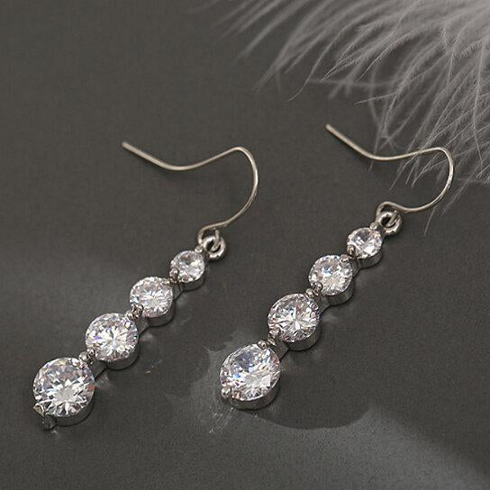 Sparkle and shine in these glistening 4 Row Graduated Crystal Drop Earrings. Plated With 18K White Gold and inset with swarovski crystal stones, these earrings will also make a wonderful gift.