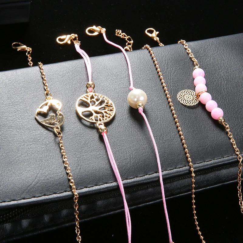 14K Gold plating women of the world unite 5 piece bracelet set.