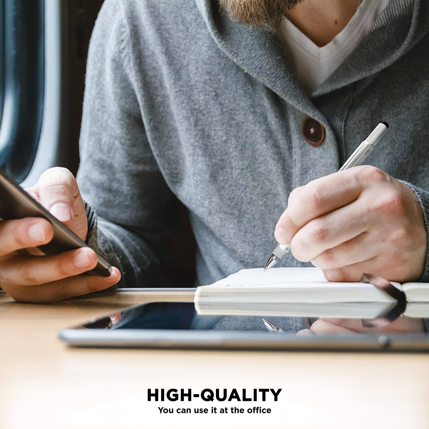 • Combines all your most useful functions for the ideal all in one. Including a ballpoint pen, stylus, flathead screwdriver, Phillips screwdriver, level and 4 inch ruler!