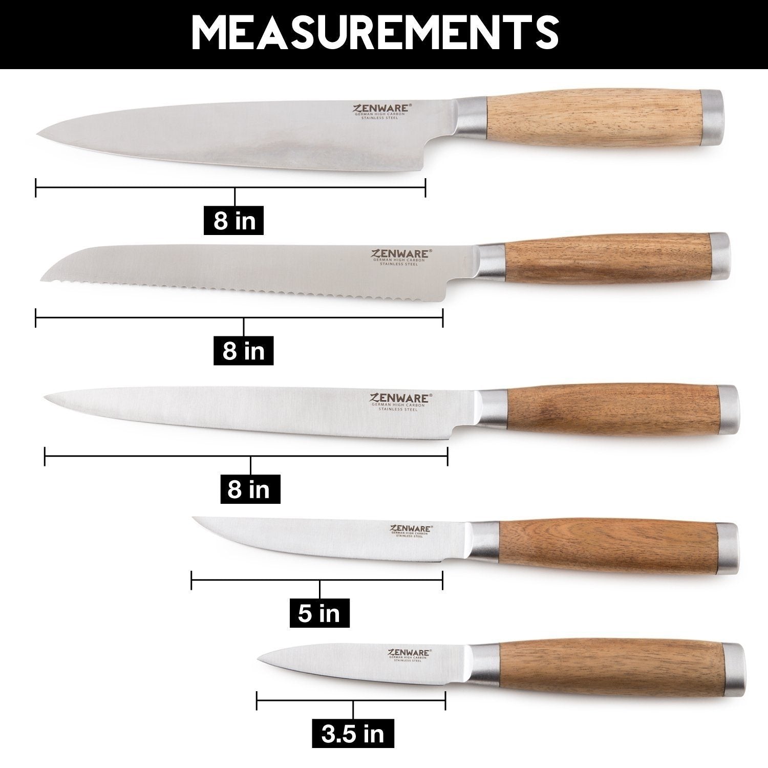 6-Piece: Zenware German Stainless Steel Kitchen Knives Set with Bamboo Magnetic Block