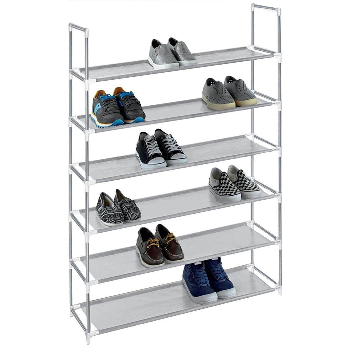 • Our 6-tier shoe rack holds up to 30-pairs of shoes, which means that shoe divas will need more than one of these handy items.