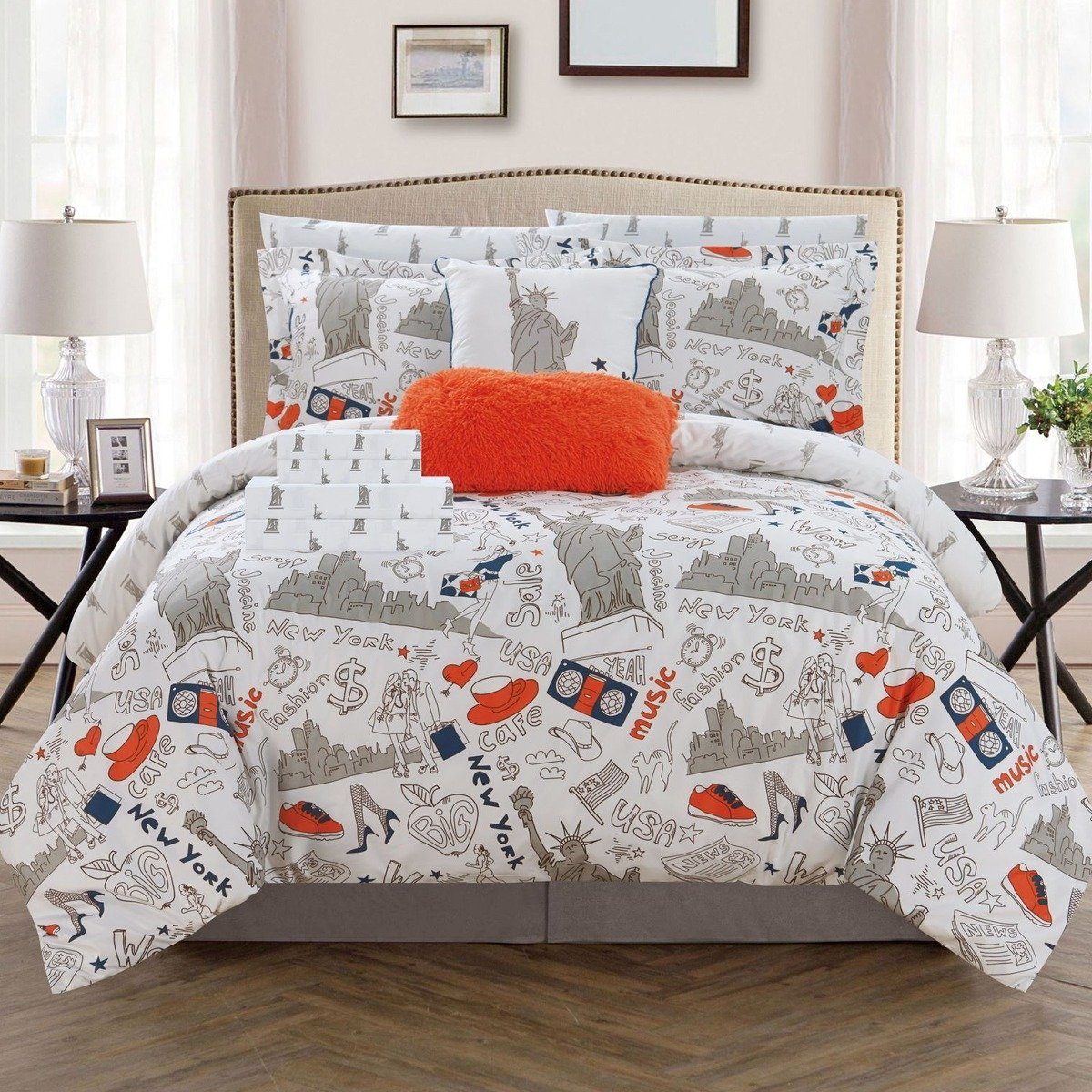 9-Piece Set: Liberty Reversible Comforter Set New York Theme Printed Design Bed