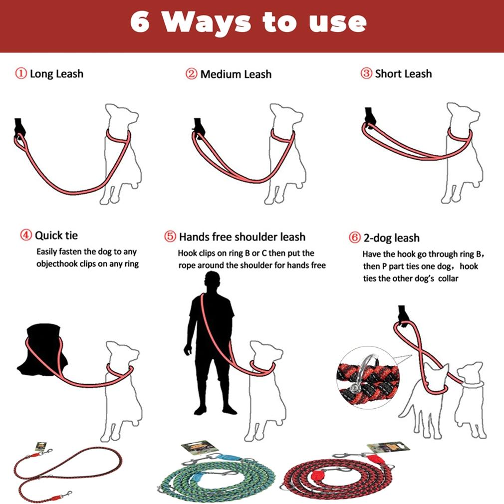 - The rope leash clasp is sturdy and is equipped with a safety lock catch to ensure that your dog cannot slip out of the rope leash while you're jogging outdoors with it.