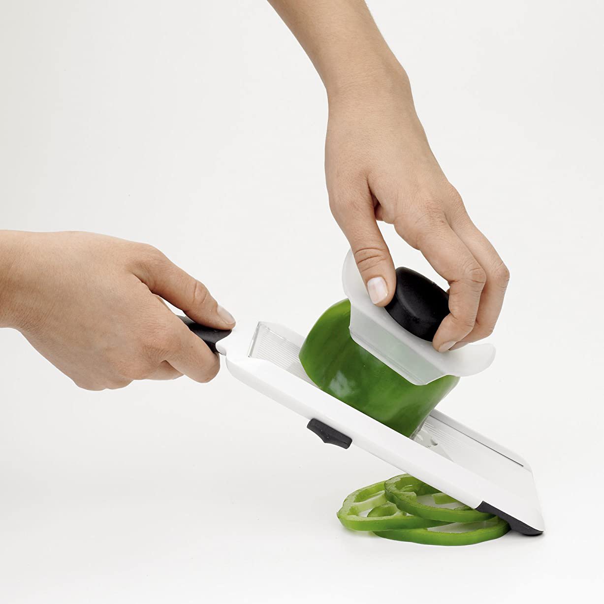 Use this quick and easy Mandoline Slicer to slice anything from fruits and vegetables to cheese. This handy slicer is a must-have utensil for every kitchen.