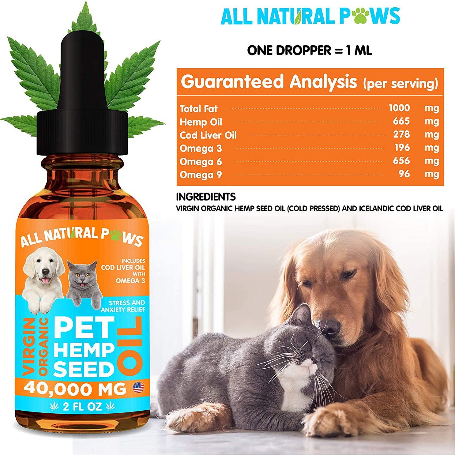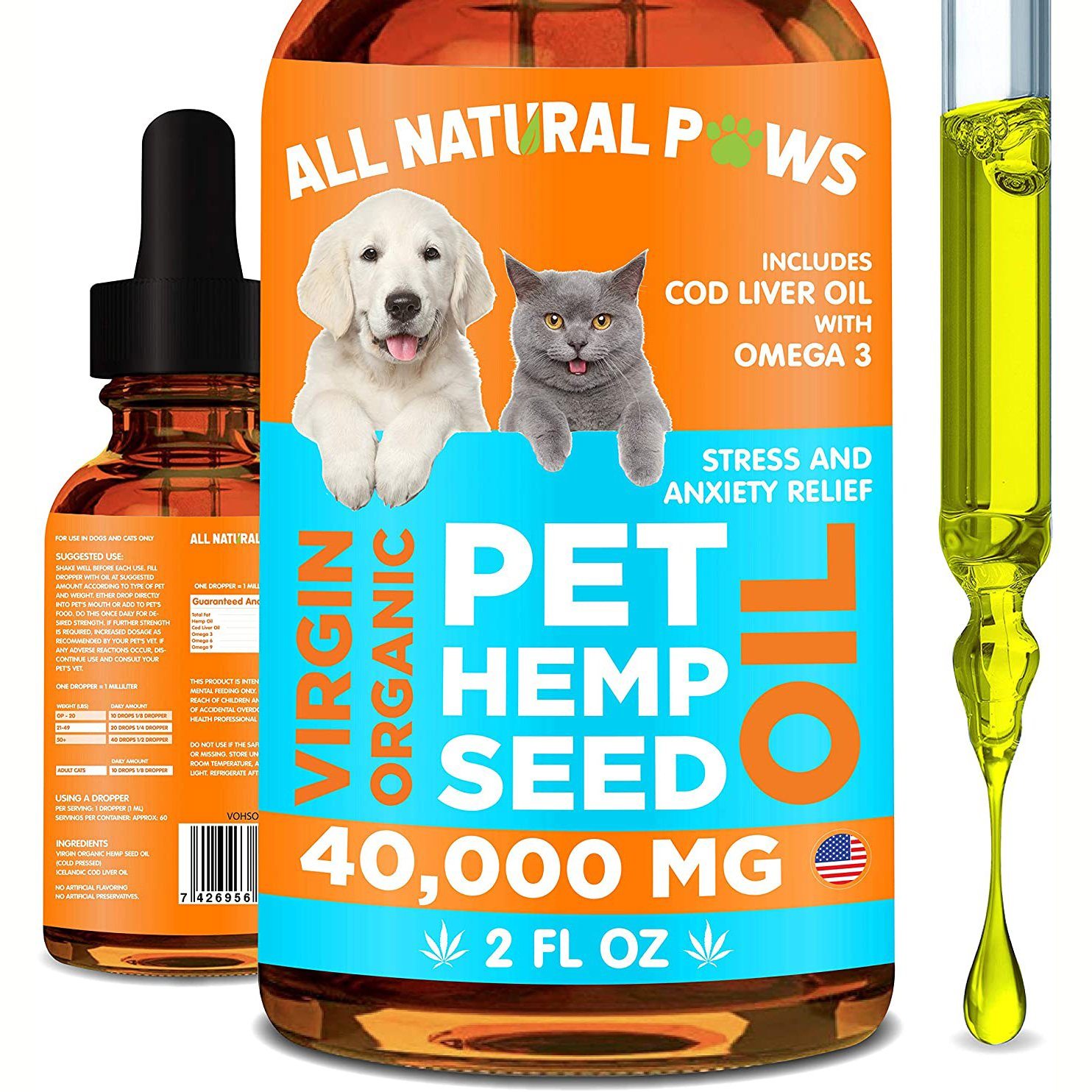 - Natural and ordganic - This pet hemp oil blend contains nothing other than hemp seed oil, cod liver oil, and omega-3 fatty acids. There are no artificial preservatives or coloring, ensuring that your pets only get the best of all the ingredients.
